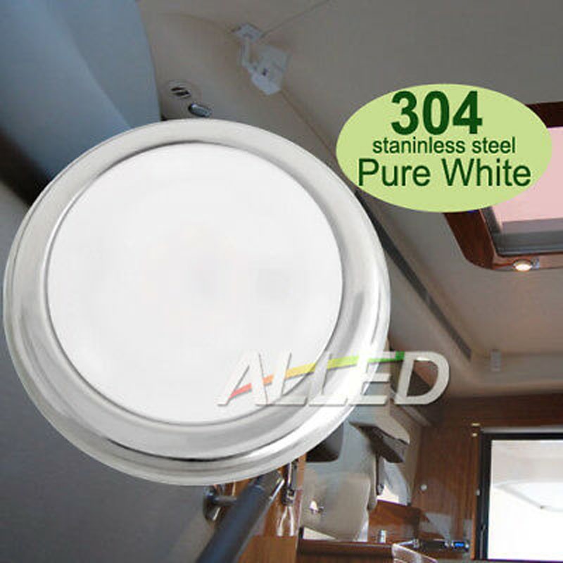 This stylish high powered LED roof light provides a wide light spread with a highly polished 304 grade stainless steel. It provides a pure white and an even spread of soft light without causing eyestrain, even with the enhanced brightness version. Equipped with 304 stainless steel housing, it shows an elegant luxurious apprearance and enhances your interior decor style as well. A special removable PC lens is a plus for your surface mounting convenience, you just need to detach the PC lens according to the instructions, then you can see the mounting holes for screwing. All screws are concealed under the lens which will leave a clean finish.