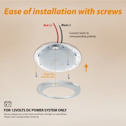 • Operating voltage:12V DC • Lighting color: warm white • Low power consumption: 0.3A, 4.1W • Luminous Flux: 310lm • Lighting angle: 120 degree • Slim design for easy installation • Frosted ABS lens technology provides even and soft light distribution without glaring • Innovational heat sink construction to guarantee its working efficiency • Lens designed to optimize light distribution • Circuit board completely sealed to resist water, corrosion and vibration • Weight: 92g • Diameter: 127mm, depth: 11mm