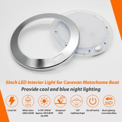 12V 5inch Silver LED Ceiling Light Programmed Switch Cool White/Blue