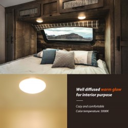 ALLED introduces this amazing LED Mushroom Roof Cabin Light for your interior caravan, motorhome, RV, marine interior roof light application. Combined with high quality LEDs, it provides brighter lighting for environment light application. Designed with surface mounting construction and top plate, all of its screws will be concealed after installation which will leave a clean finish and it is efficient heat sink.