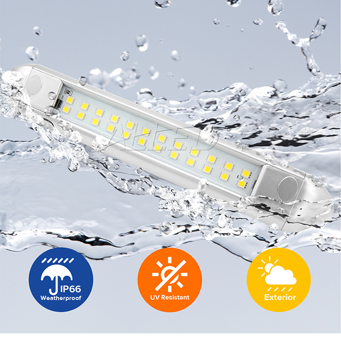 ALLED introduces this product for your interior and exterior applications, including caravan, RV, marine, yacht, camper trailer, and motor-homes, etc. The special triangle body design is an innovational idea for a more efficient form of light illumination. To replace your traditional awning light. It is ideal to be used as an awning light. Two waterproof plugs at the both ends of the light ensures its waterproof function. The silver painted aluminum housing design ensures it is easy to dissipate heat, and guarantees its long working life span.