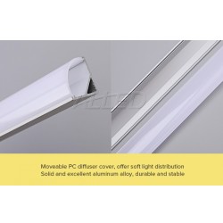 This channel bar is sold by 1M, but you purchase more than one pieces and then connect them together as you required. Its strong aluminum body not only provides protection of your strip light, but also ensures efficient heat sink. Then removable PC lens distributes soft and even lighting. A set of plugs and clips are provided for each 1M bar.