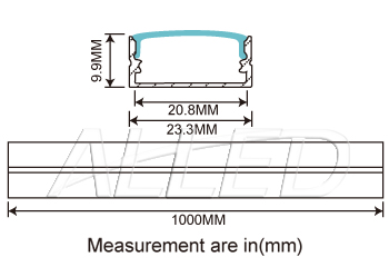 • Acceptable 20.8MM width flexible LED strip light • High quality alloy channel aluminum bar • Suitable for your flexible LED strip light • Convenience for installation • Size: 1000 X 20.8X 9.9 MM • Total weight: 168g/ea